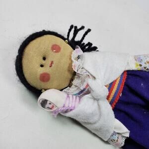 Vintage 1950s Handmade Peruvian Doll w/ Baby 6.5 Inch