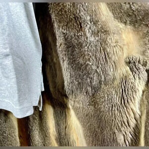 There are various seam pops. With a little TLC, this could be a gem of a coat. Or remove fur lining for another project (hide backing is supple and soft).