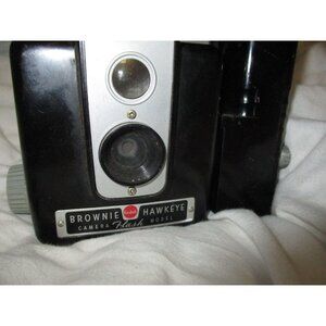 Vintage 1950"s Brownie Hawkeye Camera Flash Model. This camera overall in very good condition but will still look used. The camera will come with 1 blue flash bulb. Of course this item is for collection only unless you can still film for it because the film would have the battery built in to the film so camera would operate. There are no cracks in camera or lenses and all the lenses you can still see threw them just fine.