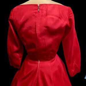 Vintage 1950s Holiday Xmas Party DRESS RED TAFFETA Bust 36"