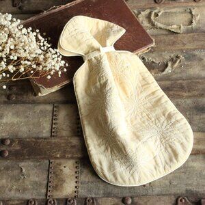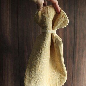 Vintage 1950s Hot Water Bottle Cover, Yellow with White Floral Embroidery