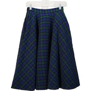 Vintage 1950s Ilene Ricky Quilted Poodle Skirt Blue & Green Plaid