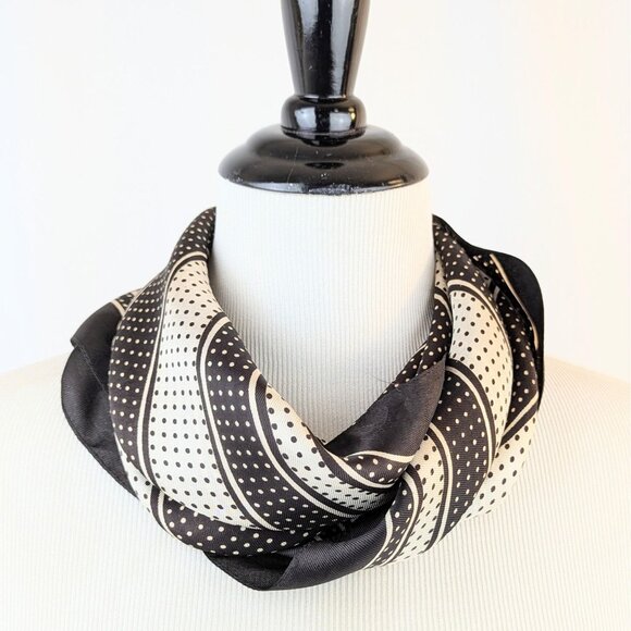 Vintage 1950s Italian Silky 26" Square Brown Polka Dot Scarf Retro MCM Scarf