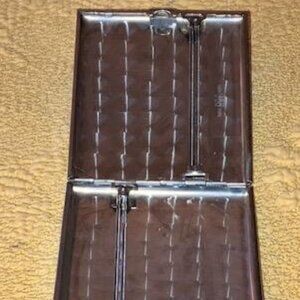 There is a TRADEMARK DTT with 3 penguins(I think they're at least!) engraved in the interior. This usually indicates that item Is Sterling Silver, I don't think this cigarette/stash/smoke/cash/blunt/Business card holder is sterling silver but thought I would pass on that Fun Fact.