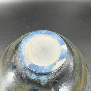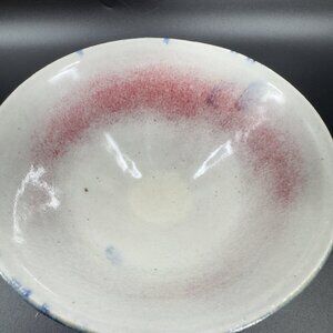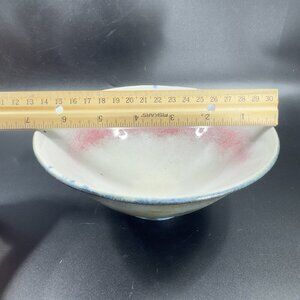 Vintage 1950s Japanese Pottery Hand Made Dish Bowl Red Splatter Glaze Signed