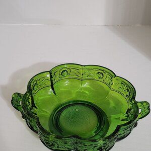 Vintage 1950s, Jeanette Glass Company Green Scalloped 2 Handled Bowl
