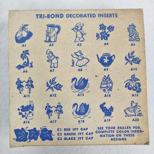 Kitsch and cute and ever so easy kitchen update tiles. These shiny plastic tiles fit over standard 4×4 tiles with some peel & stick adhesive in the middle or even some dollops of hot glue. We have uncovered several styles so please browse our shop. Lightweight for RV kitchens, too. Also great in bathrooms or for other crafty projects. Boxes are in varying condition, some do have corner issues and scuffing. Each pack contains 12 plastic tile covers.