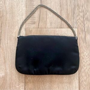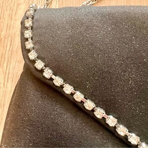 Vintage 1950s La Regale Dianmond Shape Rihnstones Black Satin Evening Bag Clutch