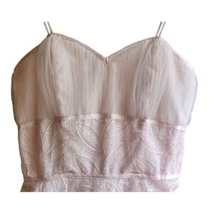 This vintage 1950s cocktail party dress features a feminine pink color with delicate lace and netting details, perfect for a formal occasion. The size XXS ensures a flattering fit for a small frame, showcasing the elegant style of the era. Made from luxurious lace material, this tea dress exudes sophistication and charm, making it a standout piece for any party or event.