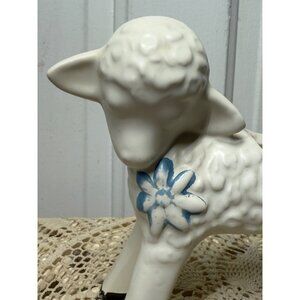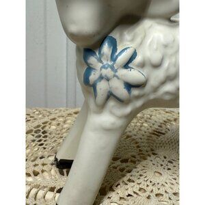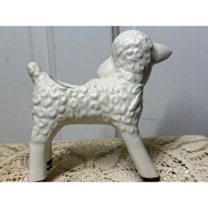 Charming vintage 1950s ceramic vase in the shape of a lamb. Perfect as a planter or decorative piece for any retro or farmhouse setting. This measures 5" long and 6" tall. It has paint wear but no chips or cracks. It is in good vintage condition.