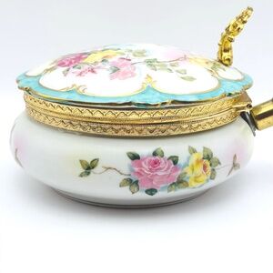 Add a touch of vintage charm to your home with this exquisite 1950s Lefton silent butler, also known as a crumb catcher. Measuring 10” in length, 5” in width, and standing 3.5” tall, this delightful piece is perfect for tidying up crumbs or simply as a decorative accent.