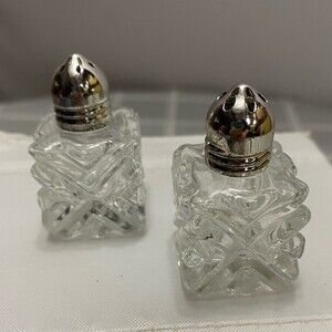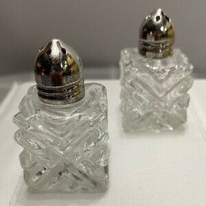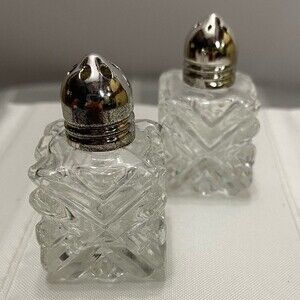 Vintage 1950's Leonard Japan Crystal Cut Glass Miniature Salt and Pepper Shakers