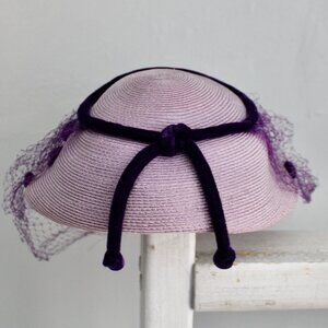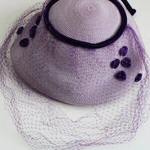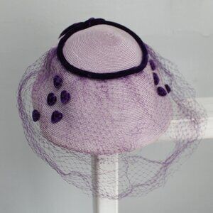 Vintage 1950's Lilac Woven Purple Heart Velvet Birdcage Veil Headpiece Hat