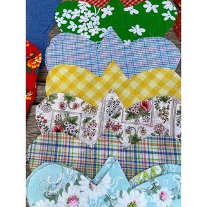 Here for your consideration is a nice lot of 70 butterfly quilt blocks. There are 58 small ones and they measure 8x6.5 and there are 12 large ones that measure 11x10". There is a cardboard template for the small one included. These all feel like cotton. They are all clean and ready to use.