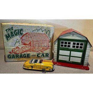 Vintage 1950s MARX TIN LITHO MAGIC GARAGE with wind up car & box nice rare!