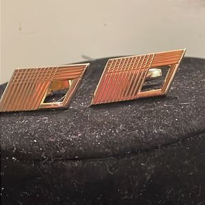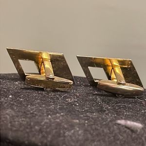 Vintage 1950s MCM Art Deco Fosters mixed metal gold tone whale back cuff links