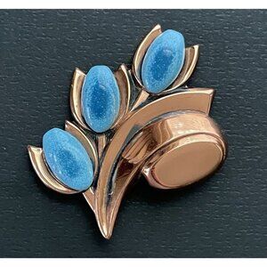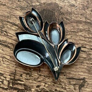 Vintage 1950s Matisse Renoir Copper Turquoise Enamel Tulip Brooch Modernist Pin
