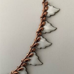Vintage 1950s Matisse White Enamel Copper MCM Mid Century Leaf Necklace