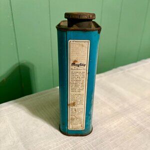 The Vintage 1950s Maytag Multi-Motor Oil 1 qt. Tin Can with Cap from Newton, Iowa is a collectible advertising piece that showcases the iconic Maytag Company logo. This original oil can features a multi-color design and is a unique piece of gas and oil memorabilia from the 1950s. Made in the United States, this tin can is a rare find for collectors interested in vintage advertising and nostalgic items.