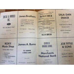 Step back into the mid-20th century with this authentic 1950s Michigan City advertising brochure. Featuring local businesses, eateries, and events from a bygone era, it offers a glimpse into the bustling commercial life of the time. A nostalgic piece for collectors and history enthusiasts alike.