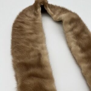 This vintage genuine fur collar features soft, plush fur in a light brown hue, perfect for enhancing coats, jackets, or wraps. Designed with snap button attachments along the satin-lined underside, this piece is likely from the mid-century era, commonly used in luxury outerwear. Features: • Material: Believed to be real fur (possibly mink or stoat, based on texture & pattern) • Color: Light brown with natural variations • Lining: Satin interior with snap buttons for easy attachment • Era: Vintage, likely 1940s–1960s • Uses: Ideal for coats, capes, or as a costume/repurposing piece Measurements (Approximate): • Length: See photos for details • Width: See photos for details Condition: • Great vintage condition with minor signs of age. Satin lining has some small imperfections, but all snaps are intact.