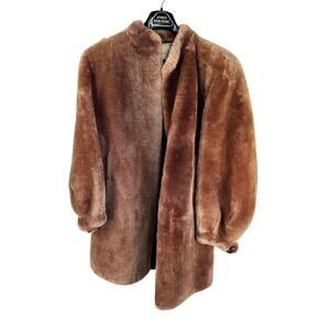 Vintage 1950s Mouton Lamb Fur Coat Brown Caramel Jacket L/XL MId century