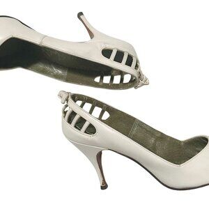 Vintage 1950s Mr. Herbert Ivory Leather Cutout Pumps Couture Footgear