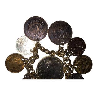 Vintage 1950s Older Foreign Coin Bracelet - Coins from Around the World