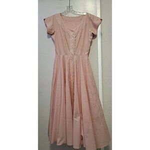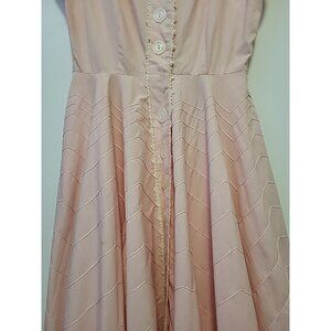 Vintage 1950s Pale Pink Swing Dress Button Front Pockets Medium