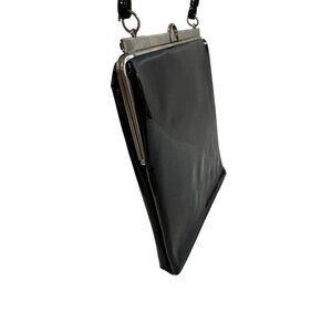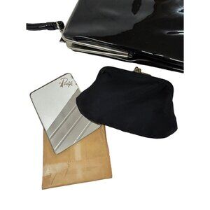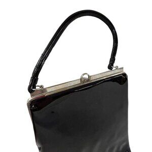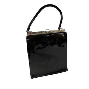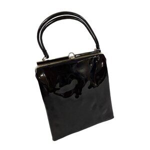 Vintage 1950s Paristyle Black Patent Leather Handbag Hinged 8"l x 9.75"h
