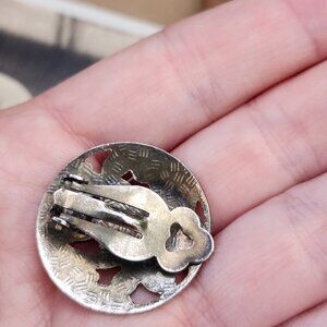 Ellie Earrings / Vintage 1950's pink and blue floral cloisonne clip-on earrings. Lovely silver tone round cloisonne earrings. Features striking pink, blue, and white floral design.
