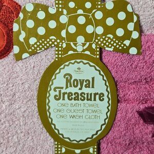 This vintage 1950s Pink Royal Treasure USA Appliqué Flower Towel Set is a charming addition to any bathroom decor. Made of terry cloth and featuring embroidered appliqué flowers, this set includes a guest towel, washcloth, and bath towel, all in a lovely pink color. With its retro 1950s design and American manufacturing, this towel set is not only practical but also a collectible item that brings a touch of nostalgia to your home.
