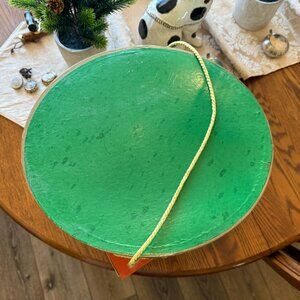 Oval Kelly green hat box has some water marks like someone was in the rain.