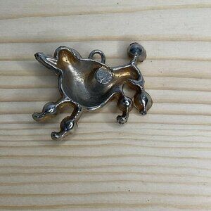 In a quaint workshop nestled in a bustling town, a skilled artisan meticulously crafted this charming poodle dog pendant. The playful design captures the whimsical essence of a beloved pet, ready to adorn your necklace or charm bracelet. Its metallic shine catches the light, evoking a sense of nostalgia and joy.