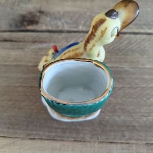 Vintage 1950s Quacking Mommy Duck and Her Baby Ceramic Mini Planter Made in Japan. This can be used as a plater or even as a toothpick holder.