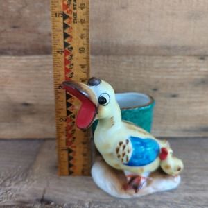 Vintage 1950s Quacking Mommy Duck and Baby Ceramic Mini Planter Made in Japan