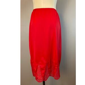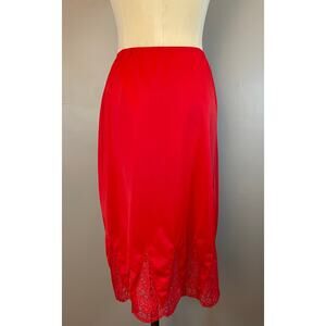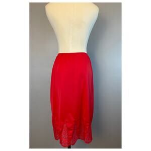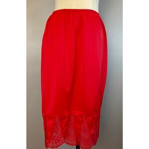 Vintage 1950s Red Nylon Half Slip Lace Paneled Hem Van Raalte Large