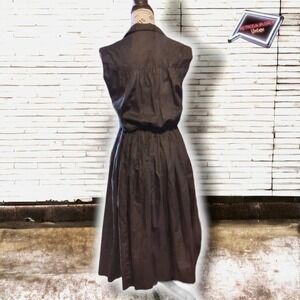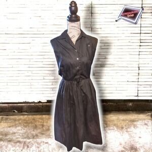 Vintage 1950's Retro Pinup Black Sleeveless Shirt Dress, Small
