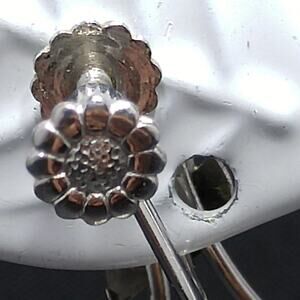These elegant vintage floral screw-back earrings date from the 1940s to 1950s and showcase the beauty of mid-century design. Each earring features a rhodium-plated finish that gives a brilliant, reflective shine and resists tarnish.