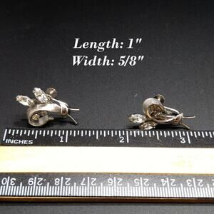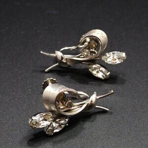 Vintage 1950s Rhodium Floral Screw Back Earrings Clear Rhinestones 1 Inch