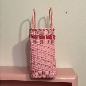 Vintage 1950s Rockabilly Pink Wicker Woven Purse Handbag. USED!
