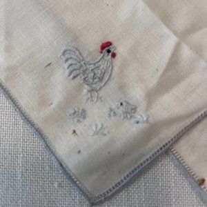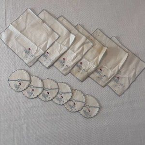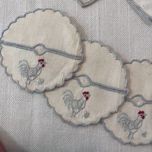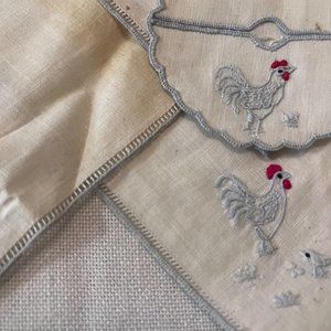 Vintage 1950's Rooster Linen Stemware Coaster Slippers with Napkins (Set of 6)
