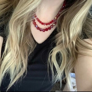 Vintage 1950’s Ruby Swarovski Crystal Aurora Borealis Beaded Necklace