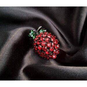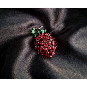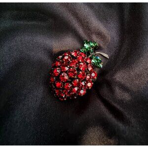 Vintage 1950s SCHREINER New York Signed Red Strawberry Rhinestone Fruit Brooch
