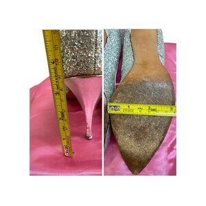 - Condition: Very good vintage condition with age-related wear. Glitter fading in places and scuffing on heel leather. See photos for details. Not recently worn—acquired as a design reference piece.