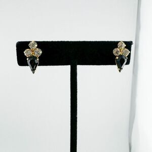 Vintage 1950s Screw Back Earrings Sparkling Clear Black Rhinestones Art Deco