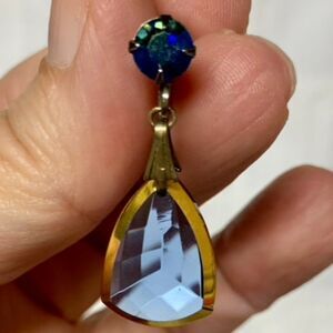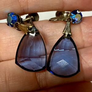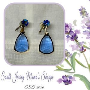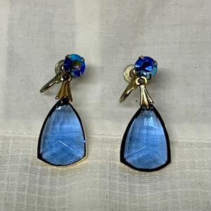Vintage 1950s Screw Back Earring Blue Rhinestone Blue Plastic Bead Dangle (J260)