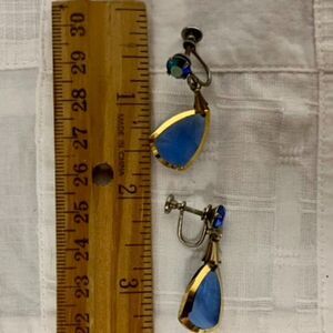 I have tried to show all sides of these lovely earrings. I have tried to photograph size by photographing them alongside of a ruler. Any blemishes due to natural aging are naturally shown in the photo. These are in wonderful Gently Used Condition. Please do not hesitate to ask me any questions you may have concerning their condition.