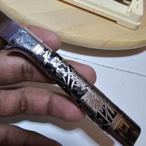 Vintage 1950s Set 6 Carvel Hall Fine Cutlery by Briddell Steak Knives In Case handle decorative foil is begining to peel and lift up in areas making it uncomfortable to the touch due to the age see pictures for reference sold as is