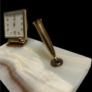 Vintage 1950’s Sheaffer Clock and Pen holder Desk Set on Onyx base.
